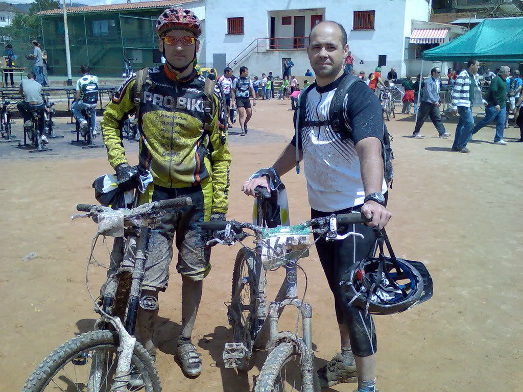 Alvaro menos mal que no has venido, porque si hubieses visto la de barro que había y como se pegaba por todas las partes de la bici, camel, casco, gafas etc.... se te hubieran caido las lágrimas viendo tu yeti tan guarra, para hacerte una idea mira la del Luis y mi Trek y te aseguro que en la foto se ve bastante menos de como estaban realmente.